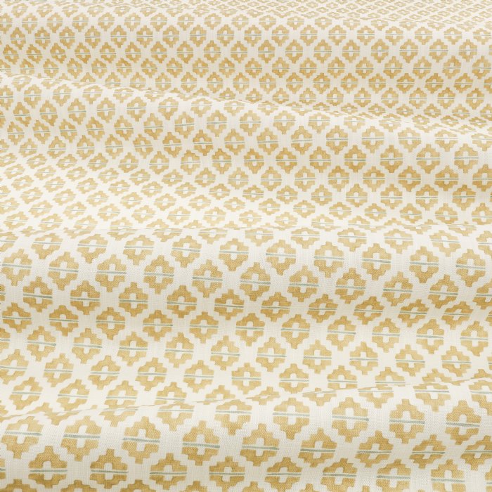 11-53471 SHIRLEY - Elska is a small-scale motif design, elaborated with a dash of colour, printed on an organic and recycled cotton linen blend. The soft nuances of the original hand-blocked artwork have been masterfully preserved, giving the design an artisanal aesthetic.