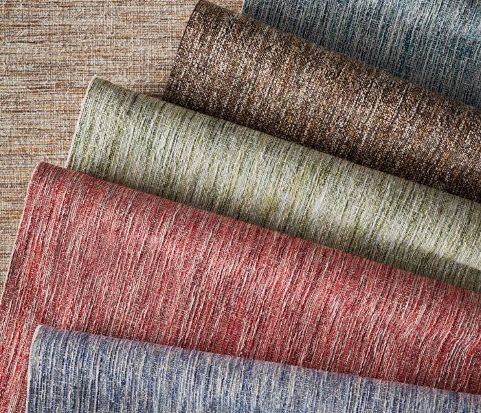 Treatable to BS5867 Part 2 Type B Curtain - A semi-plain, woven with multi-coloured space-dyed and chenille yarns to create a horizontal strié effect.