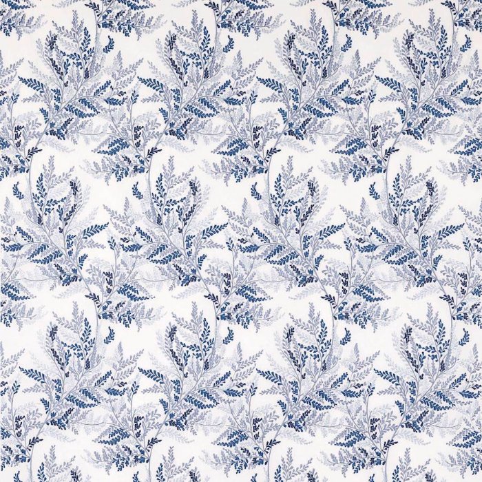 √BM: Passes Schedule 4 – Part 1 Resistance to smoldering cigarette when tested over a standard 22kgG/m³PU foam with a 2 ½ oz polyester wrap. For upholstery in the UK fabrics with this symbol must be used with a schedule 3 interliner, or be back coated to √BH level. - Graceful and detailed fern fronds cover a silky ground, embroidered in a combination of matte and satin yarns. This delicate composition has been adapted from an original watercolor painting by Monsieur Canovas himself, recently rediscovered in our archives.