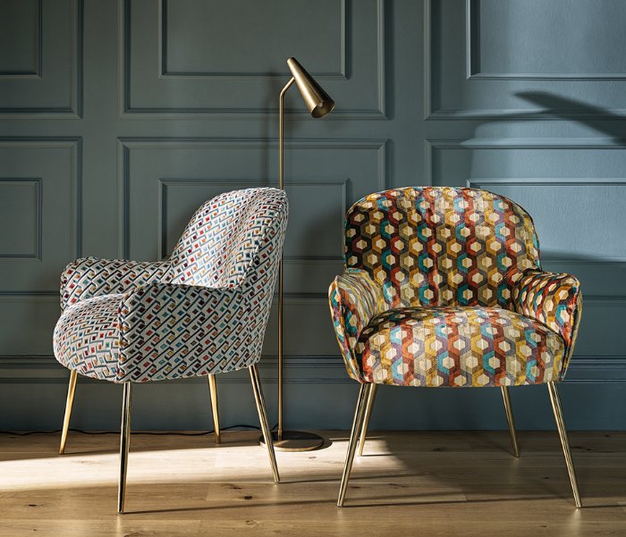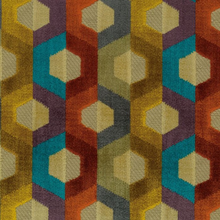 Treatable to BS5852 Match Upholstery - A colourful velvet honeycomb design, with a textural cotton twill ground.