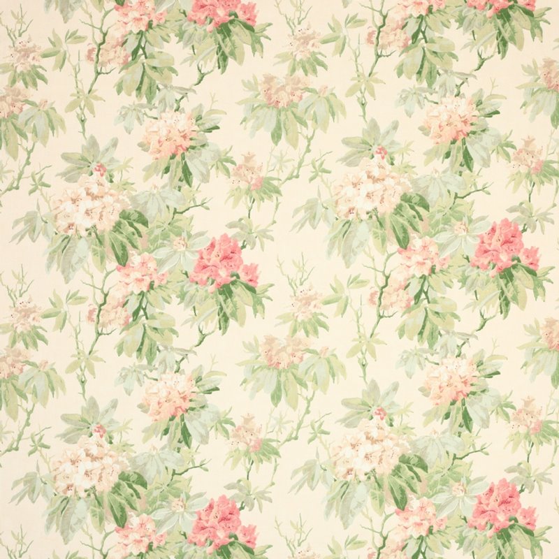 √BM - Passes Schedule 4 – Part 1 Resistance to smoldering cigarette when tested over a standard 22kgG/m³PU foam with a 2 ½ oz polyester wrap. For upholstery in the UK fabrics with this symbol must be used with a schedule 3 interliner, or be back coated to √BH level. - The exceptionally attractive block printed character of the original document is captured in this second new print design. The expansive rhododendron flowers and foliage are softened by a range of beautifully evocative colourways. Mereworth presents a more robust character than Eloise, which is enhanced by the heavy linen ground cloth, the gentle colourings harmonising well with the range of designs in the Collection.