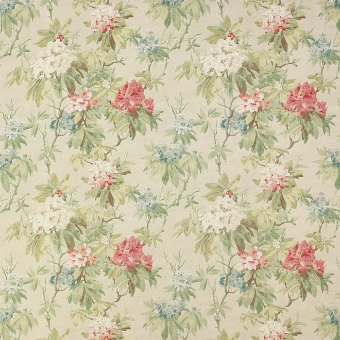 √BM - Passes Schedule 4 – Part 1 Resistance to smoldering cigarette when tested over a standard 22kgG/m³PU foam with a 2 ½ oz polyester wrap. For upholstery in the UK fabrics with this symbol must be used with a schedule 3 interliner, or be back coated to √BH level. - The exceptionally attractive block printed character of the original document is captured in this second new print design. The expansive rhododendron flowers and foliage are softened by a range of beautifully evocative colourways. Mereworth presents a more robust character than Eloise, which is enhanced by the heavy linen ground cloth, the gentle colourings harmonising well with the range of designs in the Collection.