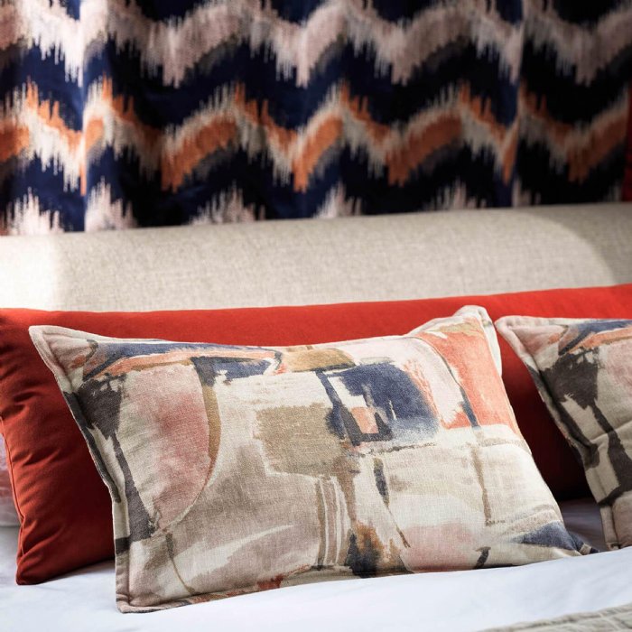 Dyed - A beautiful artwork of watercolour brushstrokes layer and blend to create this fabric`s organic appearance. Free flowing and abstract, Figura`s textural design is printed on a lovely linen blend cloth.