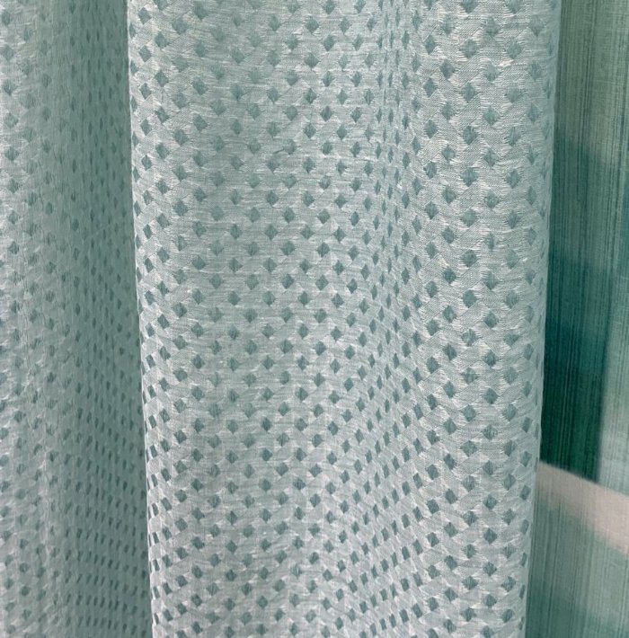 - A semi-sheer linen created by a woven polka dot repeat of small diamonds.