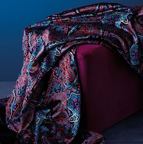 - A digitally printed pattern reminiscent of a Victorian carpet is given contemporary colourings on soft velvet.