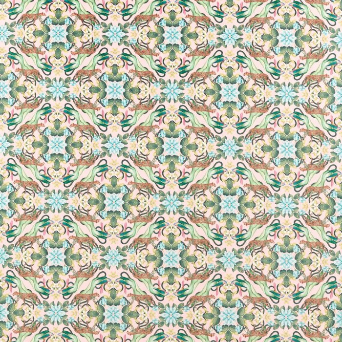 - A menagerie is a curated collection of weird, wonderful and diverse things, which is what this fabric celebrates. Inspired by the unstoppable maximalist wave hitting interior design and fashion, the pattern mixes parrots, lush flora and water lilies, with the elusive yet powerful African Leopard. The Aqua and Ivory colourways are printed on bleached linen and our Blush colourway is on a soft velvet.
