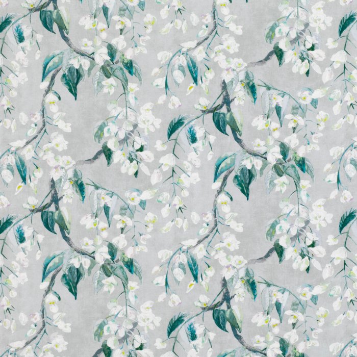 - With an abundance of blooms, this alluring Wisteria print features an illustrative painting style on a pure linen cloth. Presented in a palette of gentle watercolours with vibrant accents of brighter shades, this hanging blossom has a charming beauty.