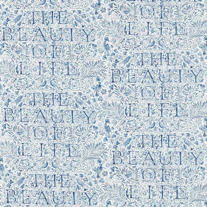 The Beauty of Life is introduced to the Morris & Co. range for the Emery Walker’s House collection. The lettering is inspired by William Morris’s own book-printing press, The Kelmscott Press, a feat he managed with the unwavering support and guidance of expert typographer, Sir Emery Walker. - Colours: BLUE