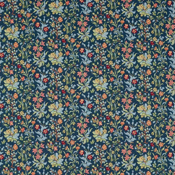 - Beguiling, jewel-like colours bring to life a startling array of meadow flowers set against a deep midnight indigo. A design of incredible detail and beauty, Flowers By May originally adorned the seat of a 17th century chair which once stood in the library of William Morris. Residing since his death in the home of his friend, neighbour and noted typographer, Sir Emery Walker, May Morris created the covered cushion with the dedication “MM to EW”. Flowers By May is a story about the creativity friendship can inspire, spanning even generations.