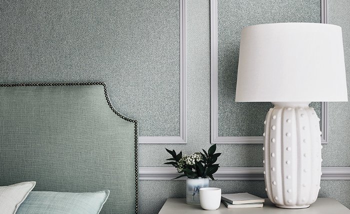 - A luxurious embossed vinyl wallcovering featuring a small scale, all-over textured design with a delicate lustre.