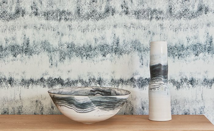 - This creative gravure printed wallcovering mimics the surface of potter Kyra Cane’s ceramics with layers of tonal colour and variations of texture. The Ombre Wallcovering is printed with areas of tinted white ink that achieves a pattern that is uncontrollable and spontaneous like Kyra’s pots. This placement of printed texture forms unique patterns and shapes that introduce changing contrasts to the design.