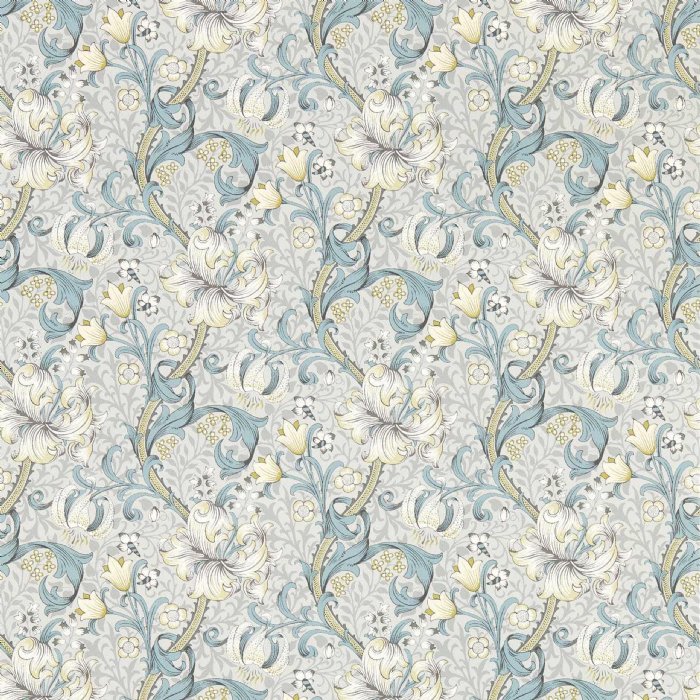 Wallcovering - Vinyl - Offering a timeless appeal, Golden Lily features entwined lily stems amid a bed of other bright flower heads. Impactful and dramatic, this is a striking interpretation of William Morris`s timeless heritage design. With a reduced scale, Golden Lily is a versatile decorating solution for spaces of all sizes.