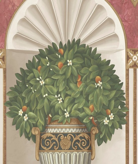 - Depicting one of King William lll and Queen Mary ll’s blossoming orange trees, Royal Jardinière is a print featuring elements originally conceptualised by master artist Antonio Verrio. The King’s Little Bedchamber at Hampton Court Palace features orange trees in these ornate pedestals surrounded by opulent pink marble, giving its symmetrical structure a classical grandeur. The design celebrates the joint monarchs’ impressive collection of various rare plants from around the globe, known as the ‘Exoticks’ and also alludes to William’s ancestry, as a member of the House of Orange.