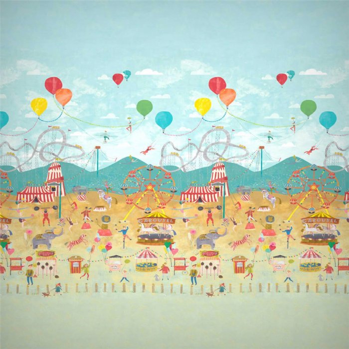 - Roll up, roll up, the circus is in town! Step into this wonderful world of joyous characters and intricate illustrations, performing under the flag topped roof of our striped big top. Share stories full of life, inspired by the unbelievable acts and colourful fairground rides within this showstopping wallpaper panel.