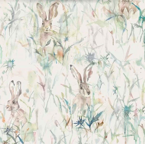 - Playful rabbits hide in amongst the grasses and thistles in this whimsical design. Digitally printed on to our signature wide width heavy weight, non woven paper.