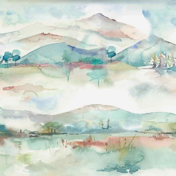 - Vibrant scenery of mountains and wilderness capture the essence of the countryside. Beautifully presented in a linear composition across the width of the fabric. Digitally printed on to our signature wide width heavy weight, non woven paper.